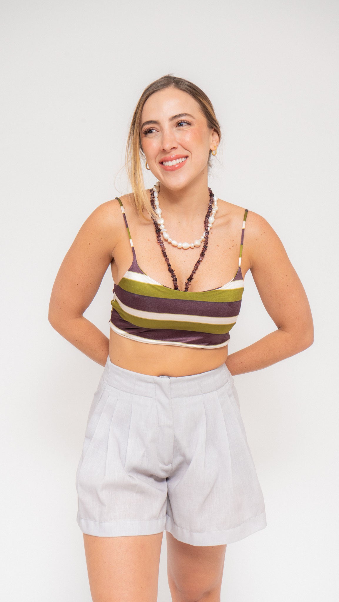 Shorts fluidos en lino, perfectos para combinar con las camisas de mesh y lograr un set fresco y cómodo.