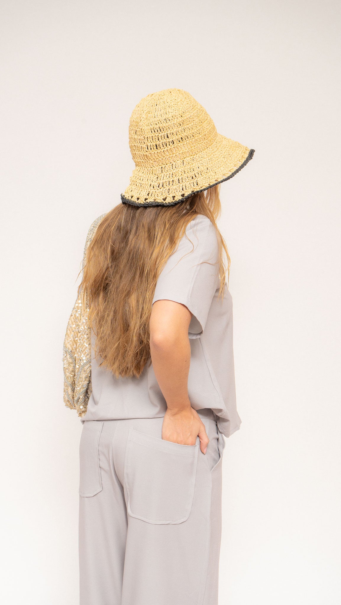 Un set de dos piezas relajado y fresco, confeccionado en una tela ligera y fresca. La camisa incluye detalles artesanales en crochet con forma de palmera, resaltando la artesanía y el estilo tropical que nos define. Viene con pantalón low rise para un look cómodo y sin esfuerzo. Se vende únicamente como set.